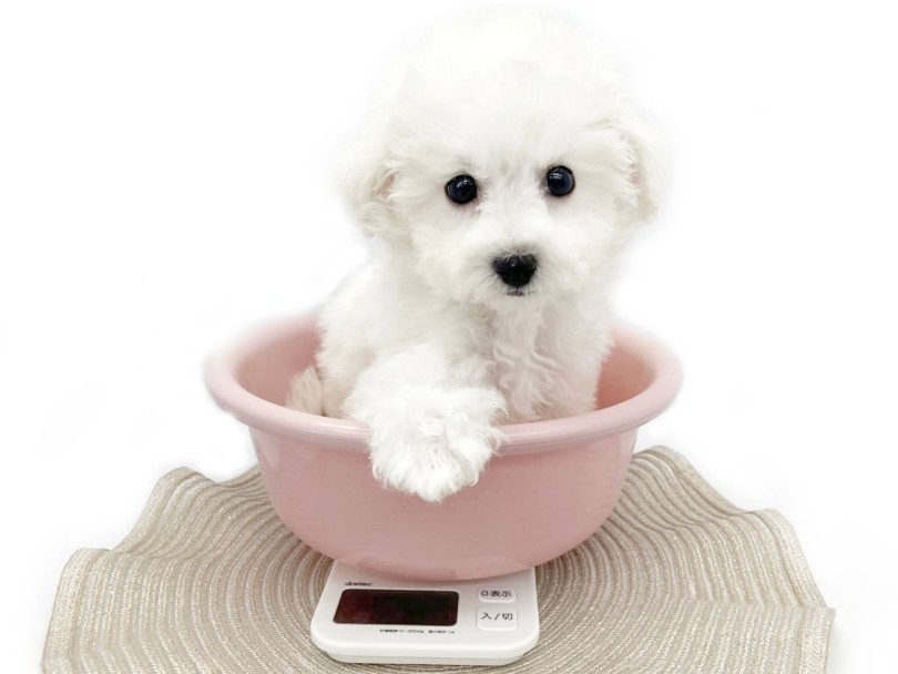真っ白で柔らかな被毛、愛らしいまん丸フェイス、そして穏やかで優しい性格。ビションフリーゼの魅力がぎゅっと詰まった完成度の高い男の子です!