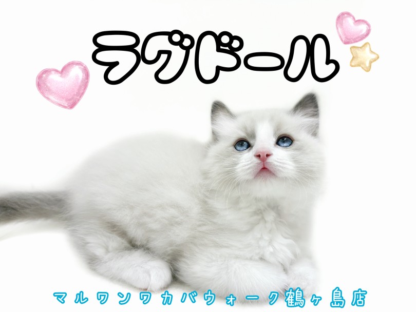 何時間でも見つめていられそうな程美しい…。そんな青い瞳を持つラグドールちゃんがマルワンワカバウォーク鶴ヶ島店に登場!