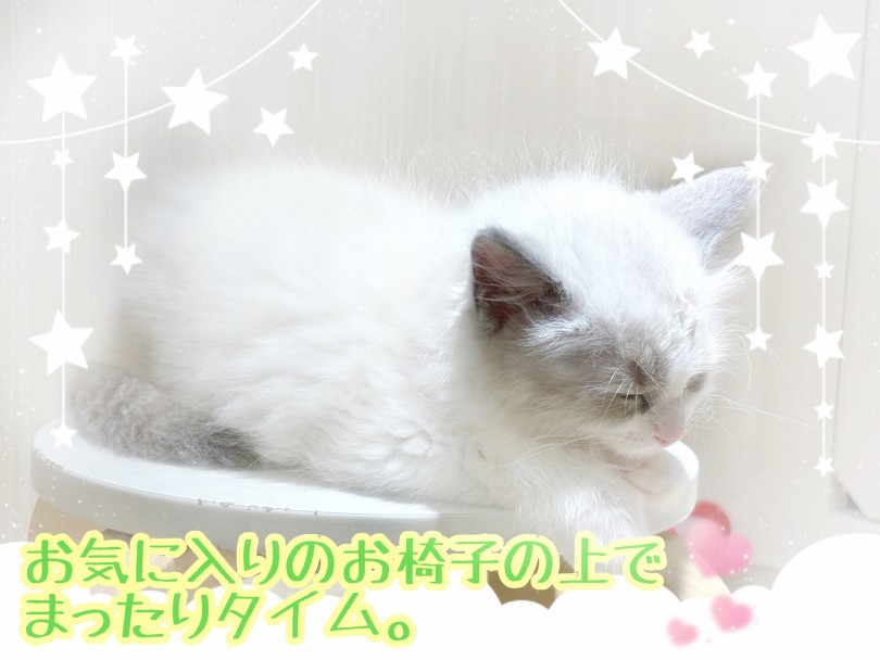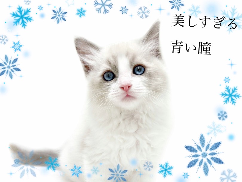ブルーの瞳と相性バッチリな柔らかく透き通るホワイトカラー。ふんわりと暖かい被毛は触れずにはいられない魅力があります♡