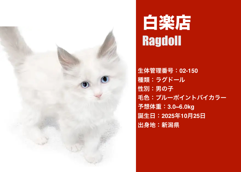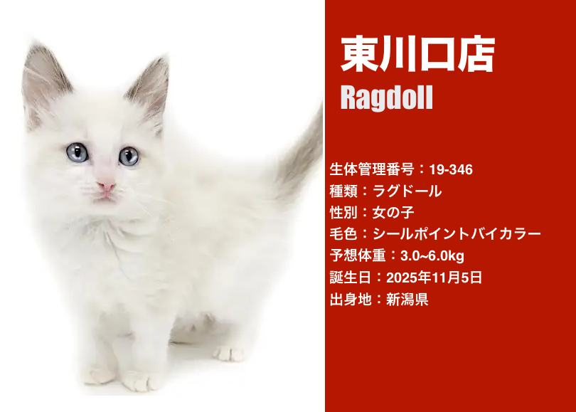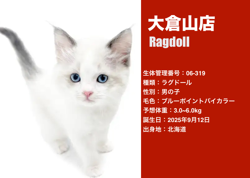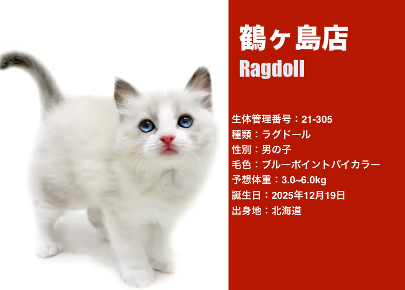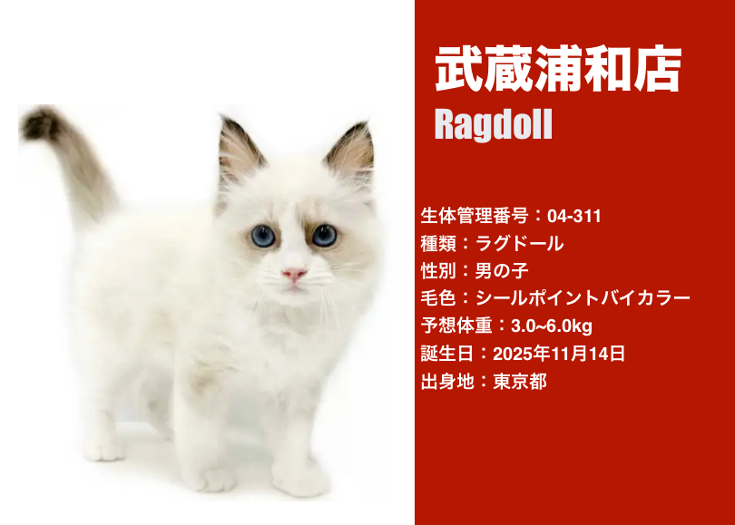 2026年2月19日現在ペットショップマルワン全店に在店中のラグドールをご紹介します!