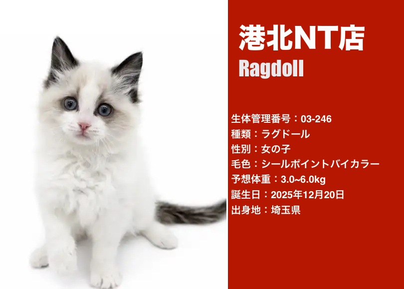 入店してすぐに、スタッフを呼んで甘えてきてくれた甘えん坊な女の子、港北NT店のラグドールちゃんにぜひ、会いに来てくださいね!