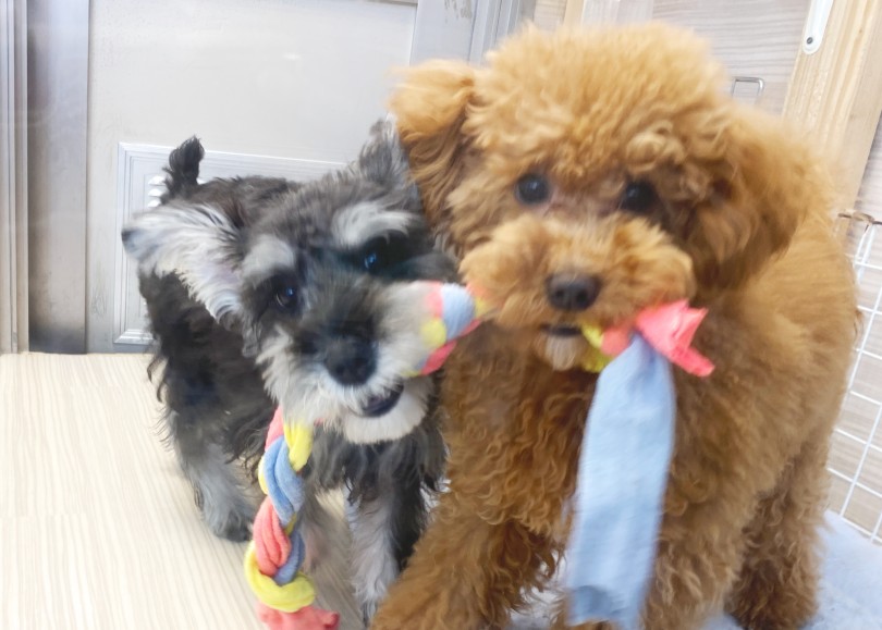 紐をお互いに引っ張り合いをしてグイグイ楽しそうにしていました♪