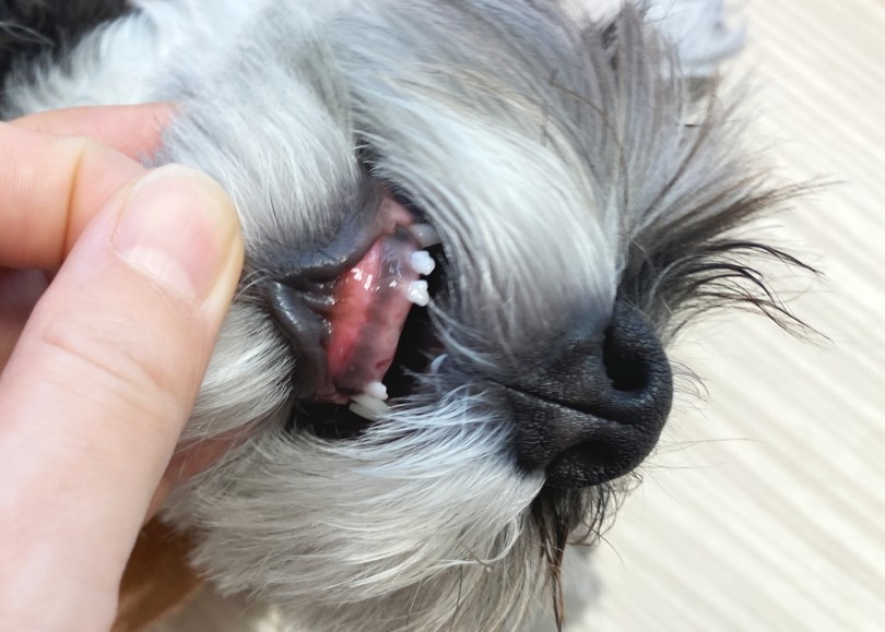シュナ子の歯をチェックしたら3本も抜けてました!!パチパチ!