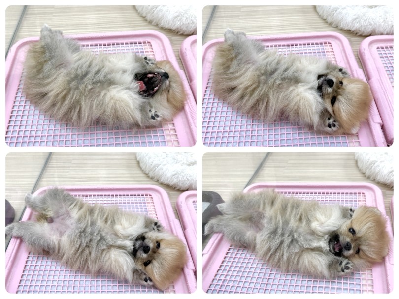 入店して次の日には下の写真のように、お腹をだしながら一人遊びも楽しそうです。