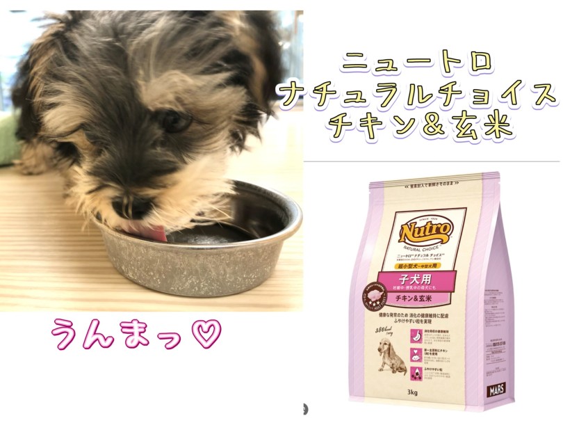 マルキーちゃんは現在「ニュートロ社のナチュラルチョイスチキン&玄米」を1日2回食べています。