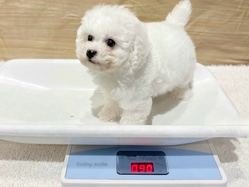 ビションフリーゼの成犬予想は一般的に3〜6kgと幅がありますが、この子は4kg前後の“小さめサイズ”が期待できるタイプです♪