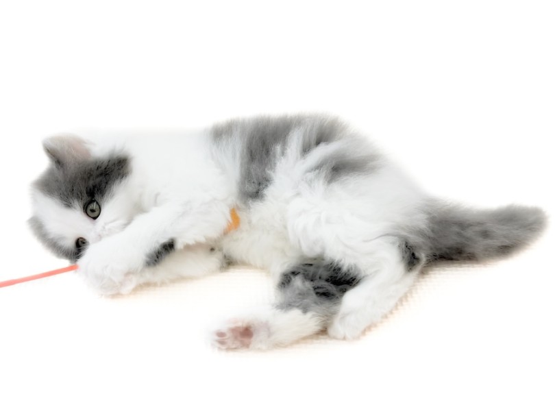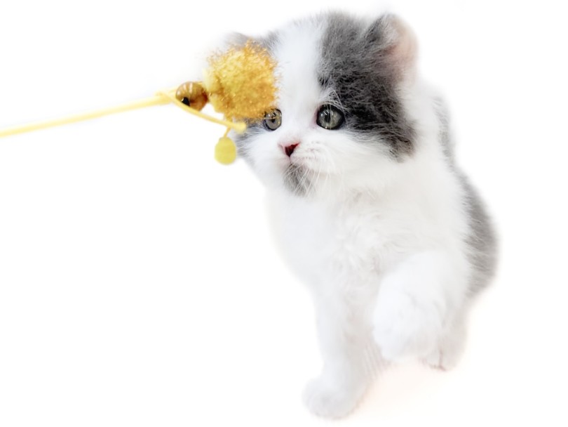 猫じゃらしをしっかり見つめ、前足を伸ばして可愛い猫パンチ!