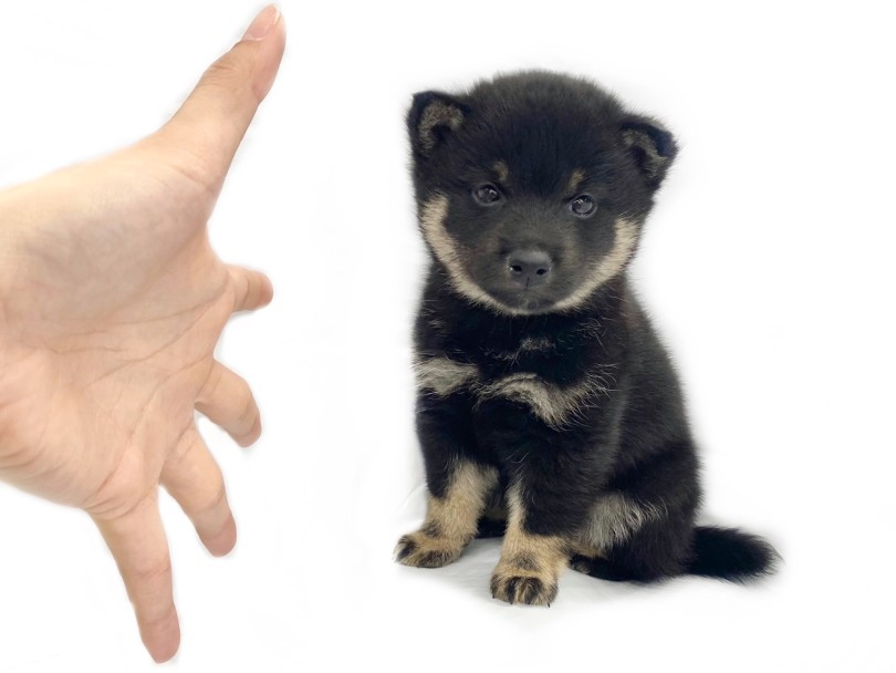 手で収まってしまうほどのコンパクトなボディの豆柴くん。