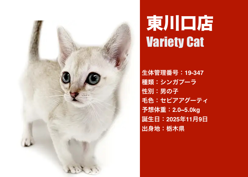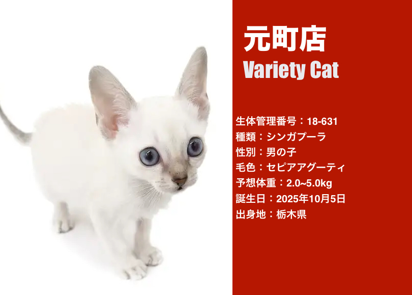 大きく印象的なアーモンドアイと、コンパクトで整ったお顔立ちはシンガプーラならではの魅力!!