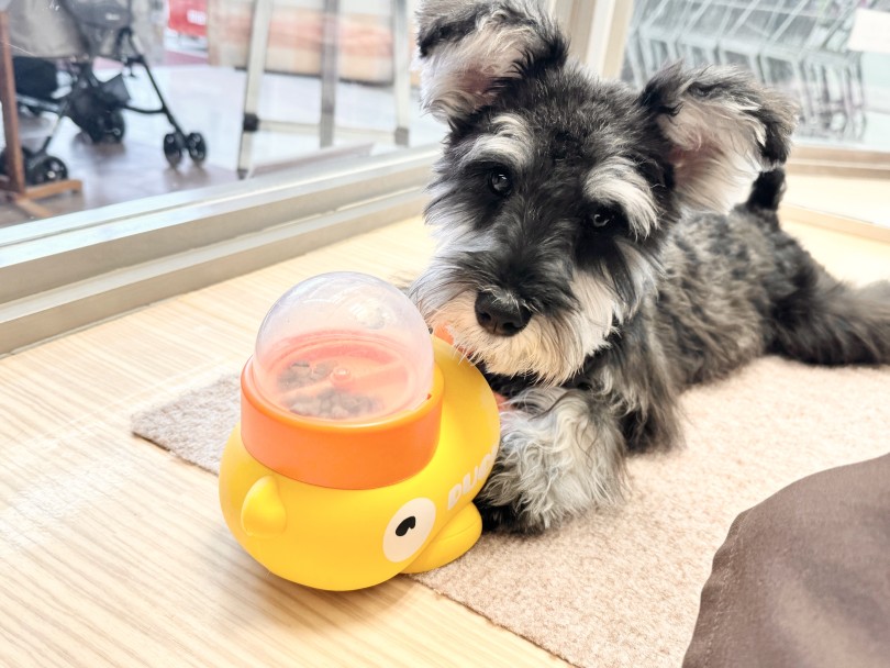 そんなシュナちゃんに、今日は頭を使って遊ぶオモチャをプレゼントしてみました!
