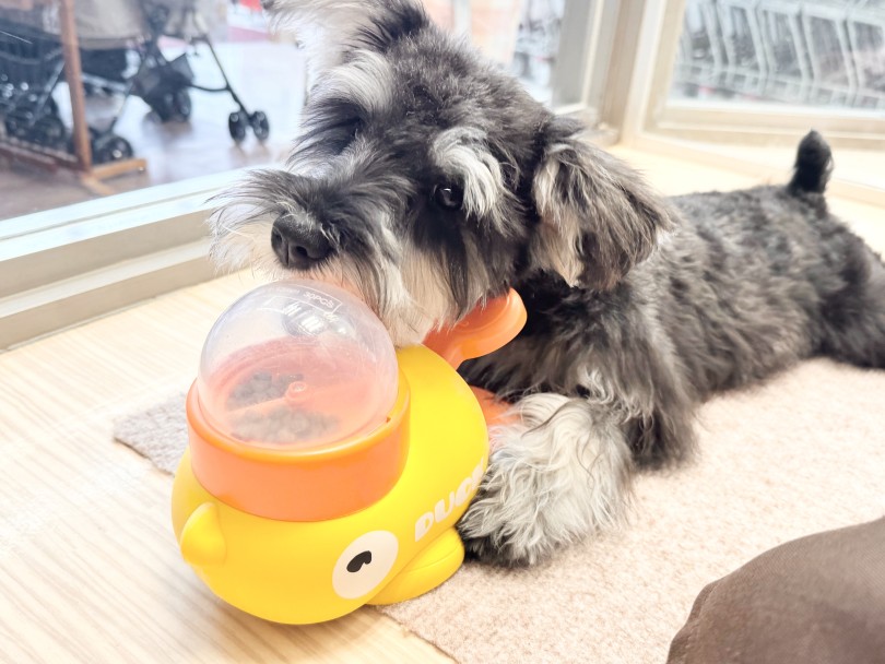 オモチャの中にオヤツを入れて遊ぶことは、知育玩具としてのメリットが高いと言われています♪
