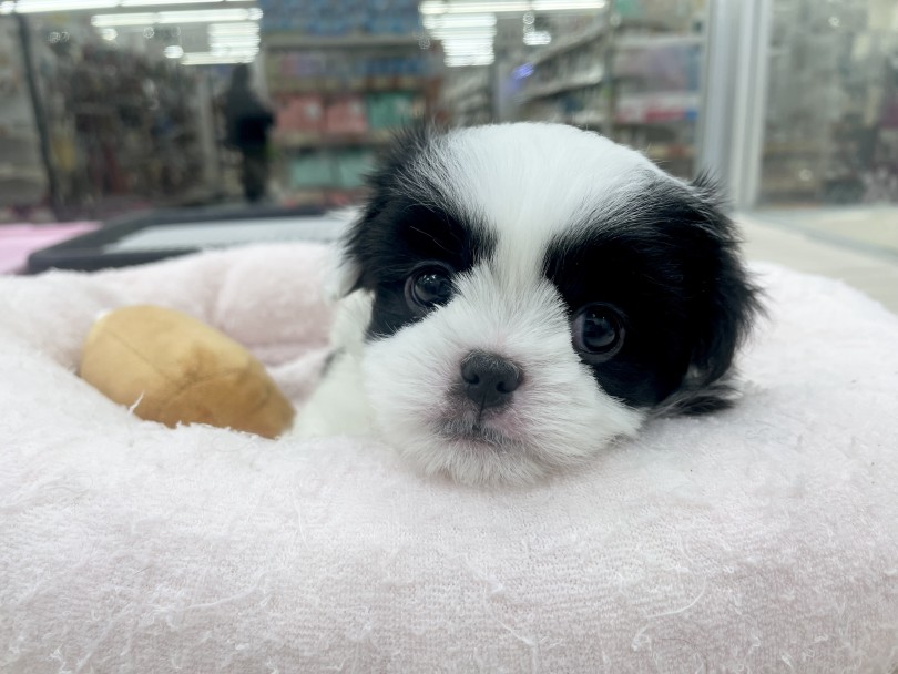 穏やかな性格でありながら、人懐っこさも抜群の狆プーちゃん♪お部屋では1人遊びもなんのそので、オモチャやベッドで遊び1人時間も穏やかに過ごしています。