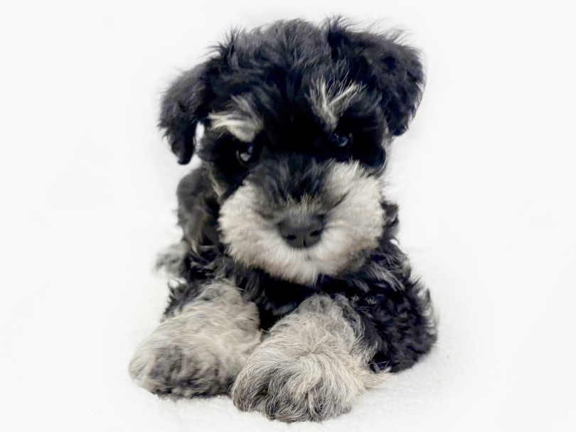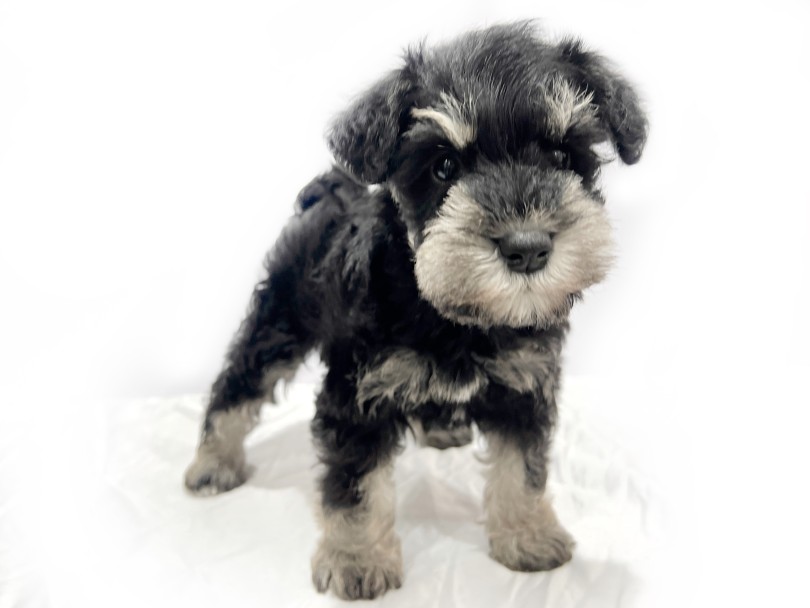 将来、眉や口ひげが伸びてくると、この黒銀のコントラストがさらに際立ちシュナカットがとても映える子に育ちます。
