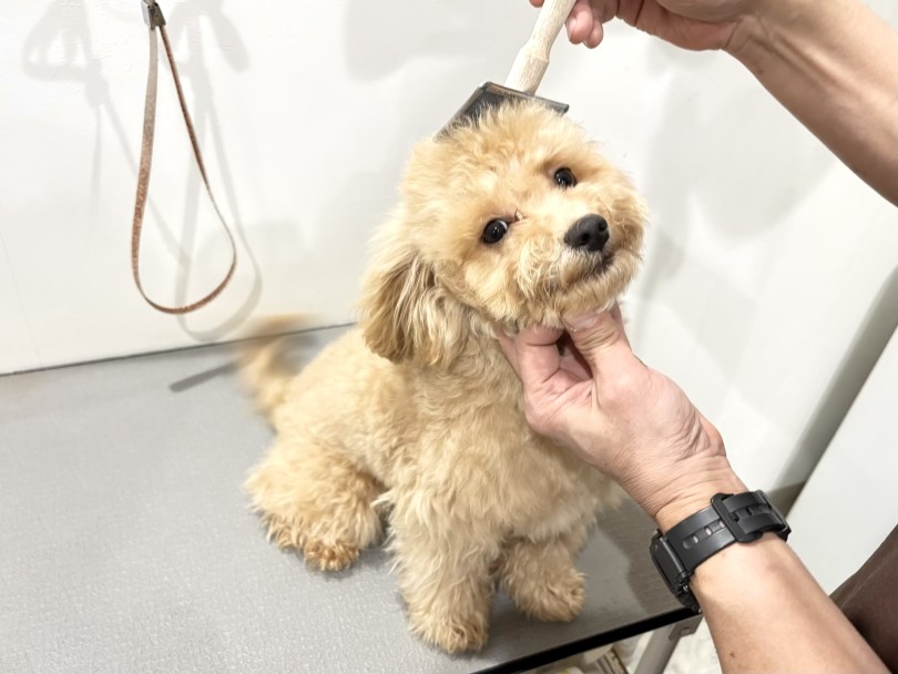 スキンシップが大好きで、どのお手入れも落ち着いて受けてくれるマルプーの女の子♡初めての方でも安心して一緒に暮らせる性格です♪