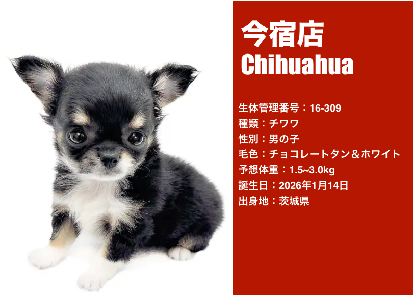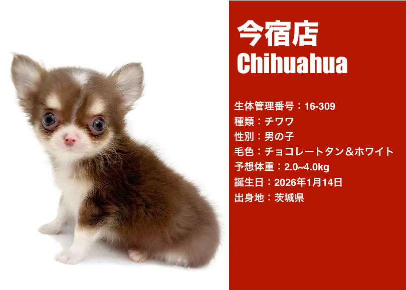 チョコレートタン&ホワイトのチワワくんを、改めてご紹介いたします。
