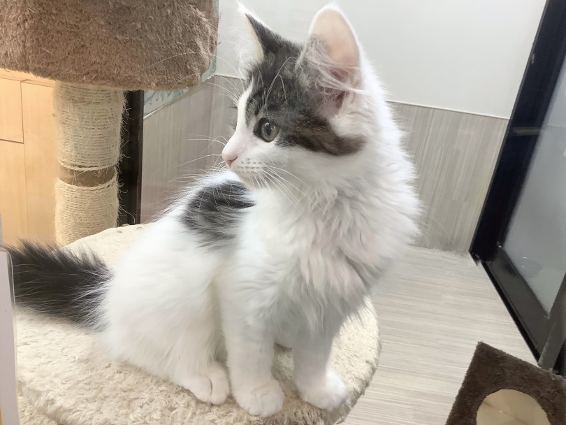 この子の最大の魅力は、なんといっても甘えん坊な性格です♡スタッフが近づくと、まっすぐ目を見つめながら「なー」と甘えた声で鳴くんです!