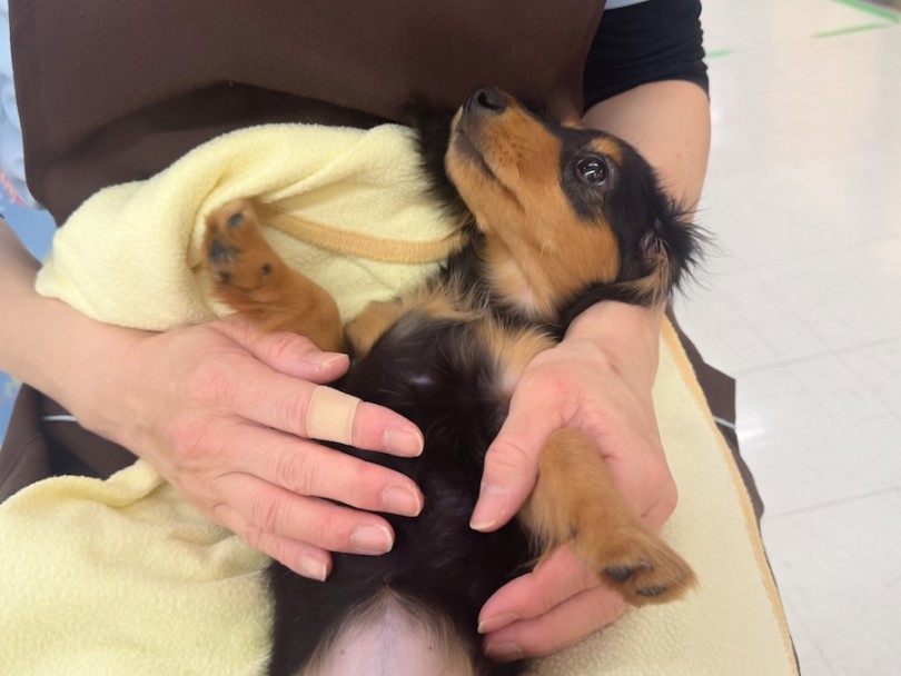 ダックスちゃまの中でもコンパクトなサイズ感ですので、小さなお子様でもしっかり抱っこができちゃいます♪