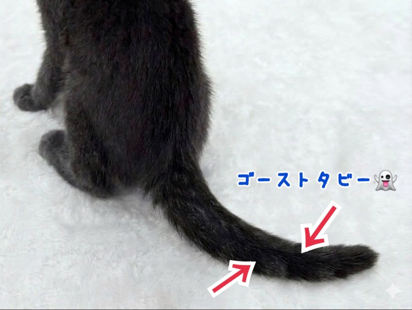 尻尾には子猫特有のゴーストタビーと呼ばれる縞模様が薄っすらとあります。