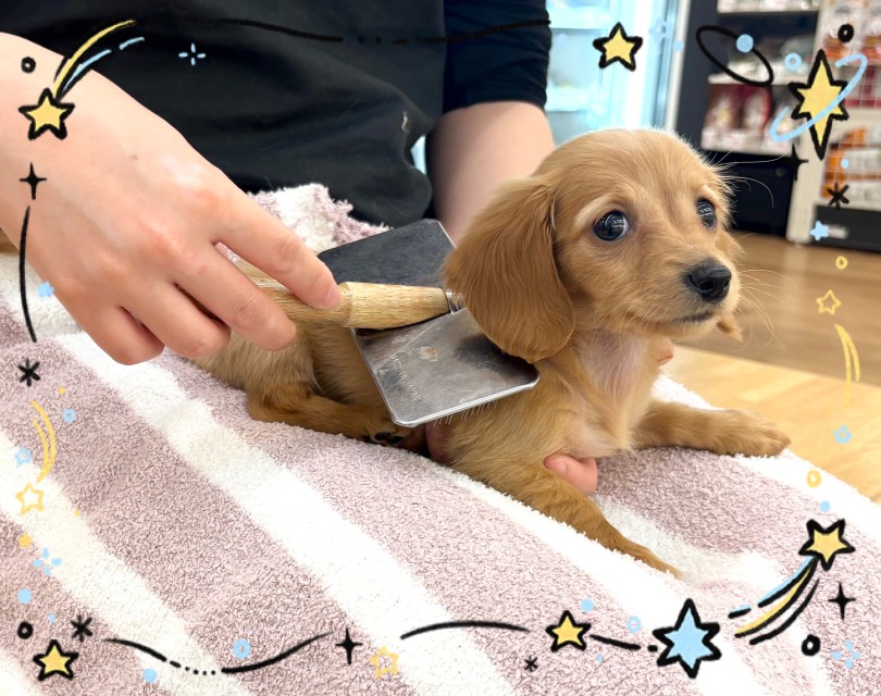 ダックスちゃんは明るく人懐っこい性格で、基本的にされるがままのマイペースです(笑)