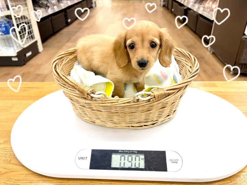 生後2ヶ月で体重は900gでした!ダックスちゃんの成犬時予想体重は3〜6kgですが、