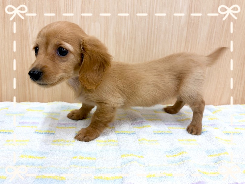 毛色はイエローのダックスちゃんソリッドカラーには珍しく眉上に、明るいイエローカラーが入っています。