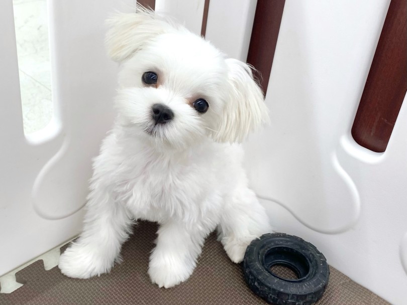 ワクチンプログラムが終了したマルチーズくんのお部屋の様子をご紹介♪お部屋の中では大好きなおもちゃで遊んだり、お客様が来ると元気いっぱいご挨拶!