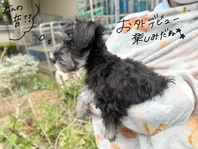 まだまだ柔らかさを残しながらも、これからさらにシュナウザーらしいしっかりとした被毛へと育っていく過程も楽しみなポイントです♡