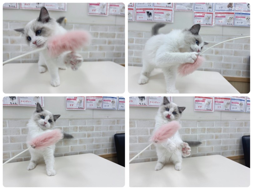 お写真でもお分かりになる様に、ラグちゃんはとても遊び上手な男の子です。生後4ヵ月にもなり性格はとても温厚に、育っています。
