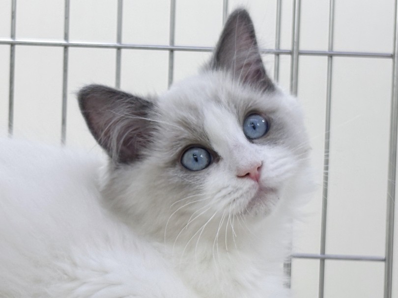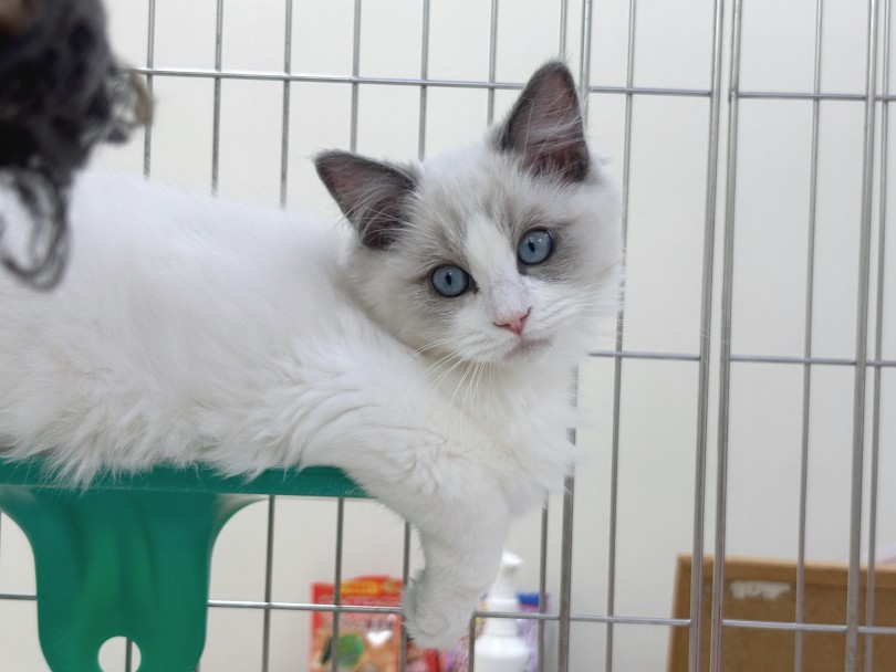 入店時よりお顔のハチワレ模様がくっきりし、更にラグドール感が増してきました。