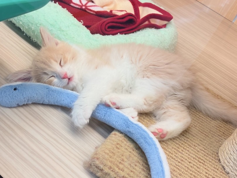 子猫期の身軽な動き、好奇心いっぱいでおもちゃを追いかける様子にスタッフも每日癒されています♪
