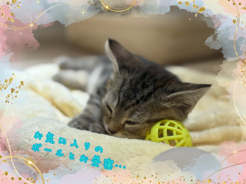 デビュー後も警戒することなくのんびりとお昼寝。子猫の時期は寝るのもお仕事。