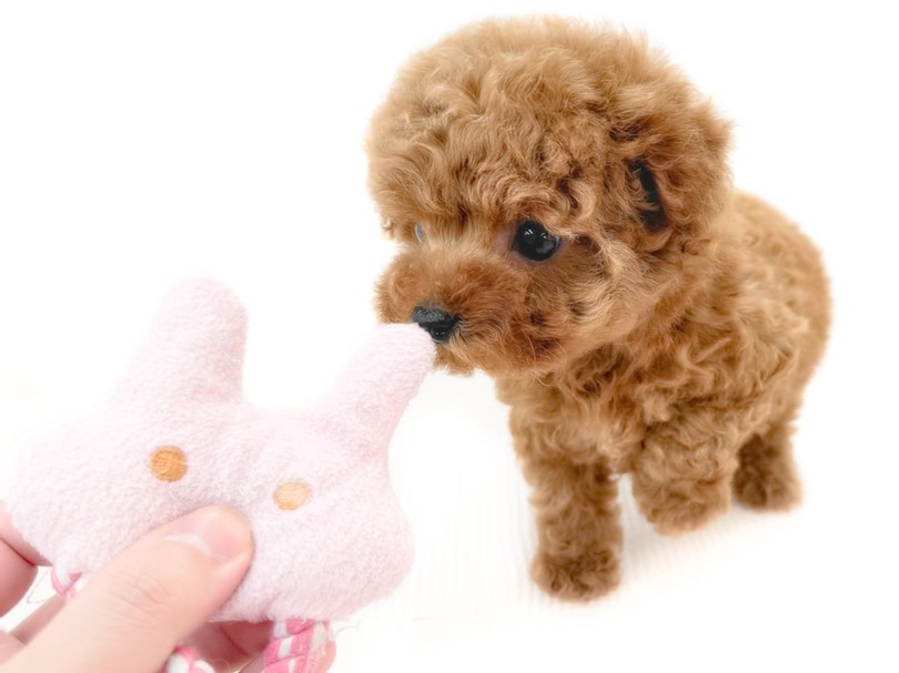 手との比較で分かる通り、かなりコンパクト。手のひらにスッポリと収まってしまうサイズ感で、一般的なトイプードルと比較しても1周り半程度小柄です。