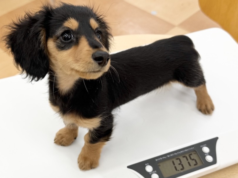 入店時の体重は750g、現在は1,3kgとコンパクトなサイズ感!骨格、肉付き共に順調に成長し始めている中でのこの小柄さですから、成犬時でも【ミニチュア】よりも1回り程小柄なサイズになるのではないでしょうか。